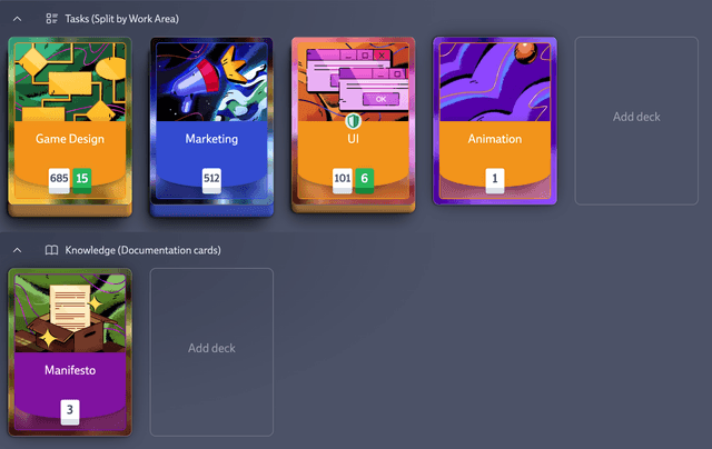 We love videogames and you probably do too, so it’s no surprise that the idea of project management as a way of playing can be appealing. Creating a playful environment transforms even the more mundane tasks into something new and exciting, and more playful, visually intuitive interfaces, like card-based systems (such as ours!), make task management more of an interactive experience instead of just a static to-do list. This can make tasks not feel like just a chore, and increases both the engagement and the enjoyment for you and the rest of your team.